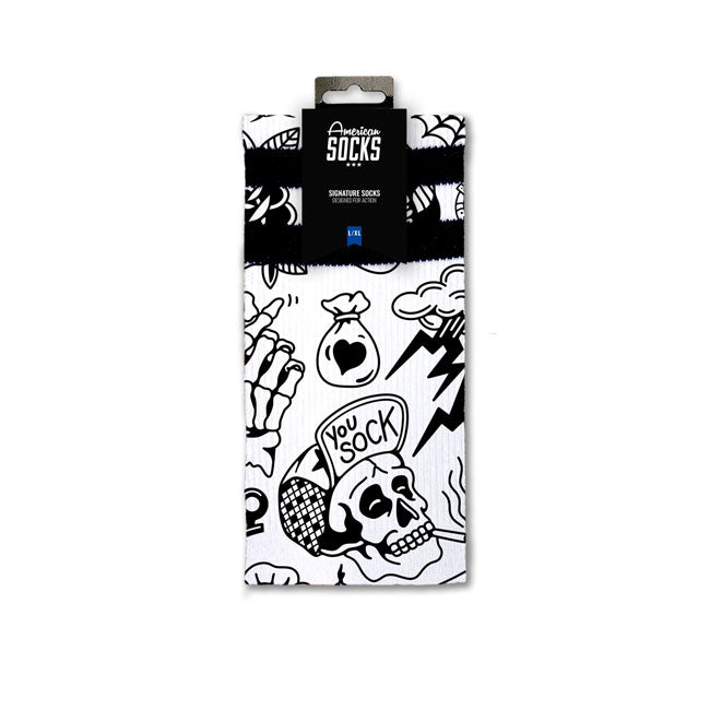 Tehosta sukkapeliäsi American Socks' Signature-sarjassa, jossa on rohkeita, graafisia malleja ja parannettu Coolmax®-sekoitus, joka pitää jalkasi mukavina koko päivän. Nämä yhteistyössä lahjakkaiden taiteilijoiden kanssa suunnitellut sukat kääntävät katseet kaikkialla.