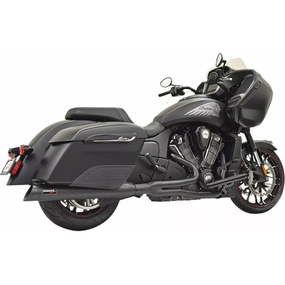 Bassani Road Rage 2-into-1-järjestelmä Indianille on varustettu porrastetuilla pääputkilla ja mustalla megafonimaisella äänenvaimentimella. Täydellinen pakoputki kuljettajalle, joka haluaa tehoa ja ääntä.
