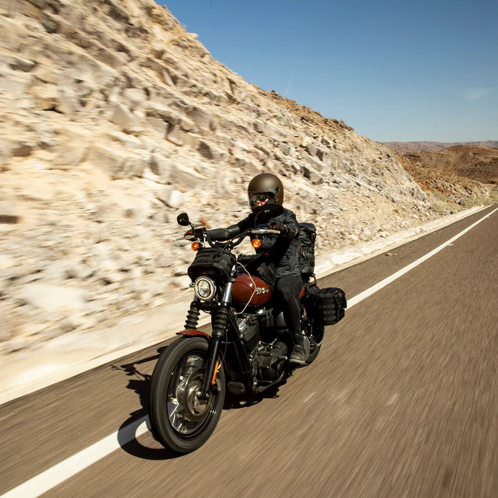 Biltwell EXFIL-18 satulalaukkusetti on suunniteltu päivittäiseen ajokäyttöön EXFIL-sarjan tunnetulla kestävyydellä. Jokaiseen laukkuun mahtuu 18 330 ml:n tölkkiä, ja ne on helppo kiinnittää yleiskäyttöisellä heittokahvalla, joka sopii istuimen alle ja lokasuojan päälle. Laukut on valmistettu UV-käsitellystä 1680 denierin ballistisesta nailonista, ja niiden sisäpuolella on EVA-vaahtomuovipaneelit, jotka pitävät laukun muodon ja kestävät kulutusta.