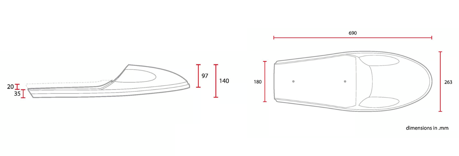Tämä malli yhdistää klassisen café racer -tyylin ja hieman modernimman ilmeen. Muoto on selkeä ja yksinkertainen, ja takaosa antaa moottoripyörälle erilaisen luonteen kuin perinteinen pyöreä kyttyrä. Se on yleispätevä satula niille, jotka haluavat jotain erottuvaa, mutta silti café racer -tyylistä.