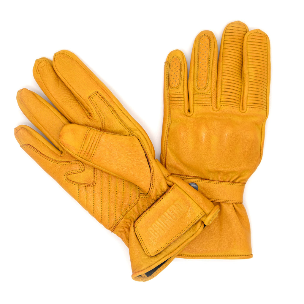 Nämä käsineet viittaavat klassiseen kilpa-tyyliin, mutta tarjoavat myös tarvittavan suojan todellisessa ajossa. Nahka antaa niille lujuutta, kun taas vahattu pinta lisää vintage-ilmeen. Sormien ja peukalon joustavat paneelit helpottavat liikkeitä, ja piilotetut PU-nivelsuojat takaavat turvallisuuden huomaamattomasti. Sisällä pehmeä polyesterivuori imee kosteutta, joten käsineet pysyvät mukavina myös pidemmillä ajomatkoilla.