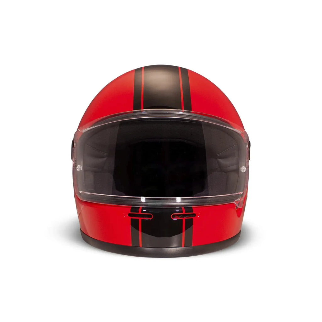 Tutustu kypäräsuunnittelun uusimpaan innovaatioon - DMD Rivale -kypärään. DMD:n kypäräperheen uusimpana jäsenenä Rivale erottuu edukseen oleellisella, virtaviivaisella muotoilullaan, joka peittää sen sisältämän edistyksellisen teknologian ja innovaation. Kypärä on valmistettu uudesta tri-compound-kuidusta, ja sen muoto on vaikuttavan kompakti tinkimättä nykyaikaisista turvallisuusstandardeista ja mukavuudesta. Tämä kokokasvokypärä ei ole vain suojaus; se on kunnianosoitus moottoriurheilun riehakkaille vuosille, ja siinä yhdistyvät nostalgia ja huipputeknologia. Kypärässä on irrotettava ja pestävä vuori, pehmustettu leukahihna, jossa on kaksinkertainen D-rengassuljenta, ja se on täysin ECE-hyväksytty, mikä takaa sekä turvallisuuden että tyylin tien päällä.