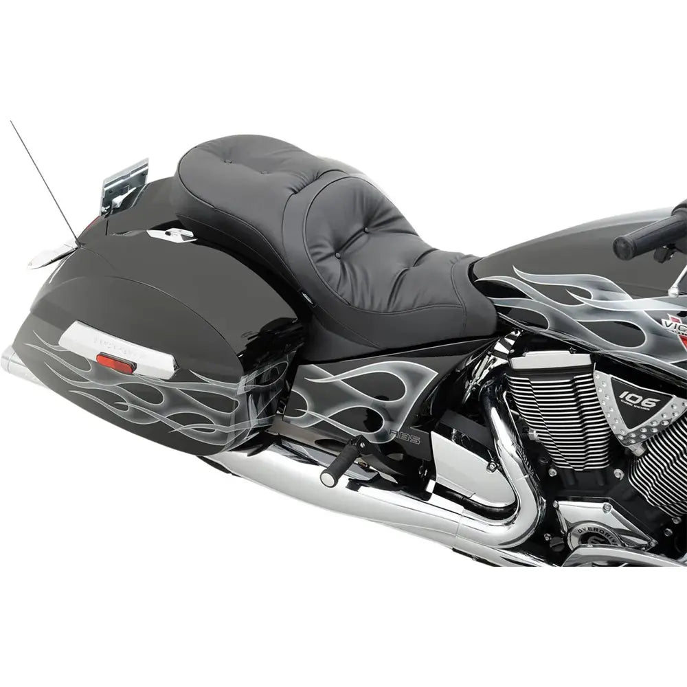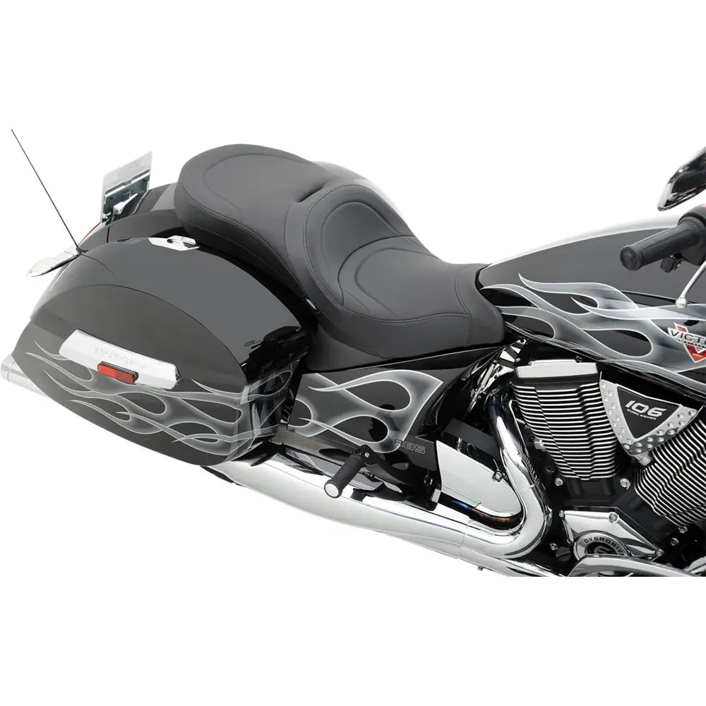 Drag Specialties matalaprofiilinen Touring-istuin on suunniteltu tarjoamaan Victory-moottoripyörällesi mukavamman ajoasennon ja matalamman istuinkorkeuden.
