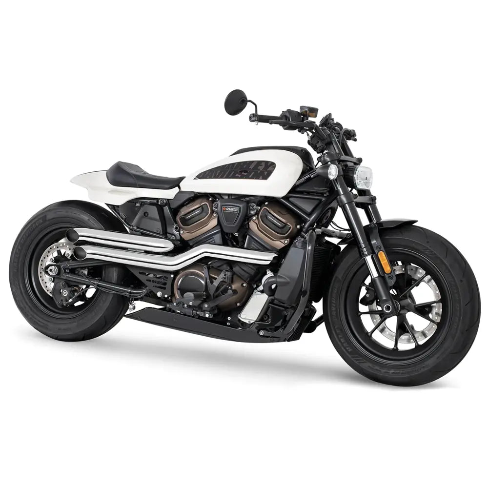 Vapauta syvä hot rod -rumba Harley Harley Freedom Performance Declaration Turn Outs -pakoputkistolla Harleylle. Tämä järjestelmä lisää vääntöä ja hevosvoimia säilyttäen samalla klassisen 2-into-2 muotoilun.