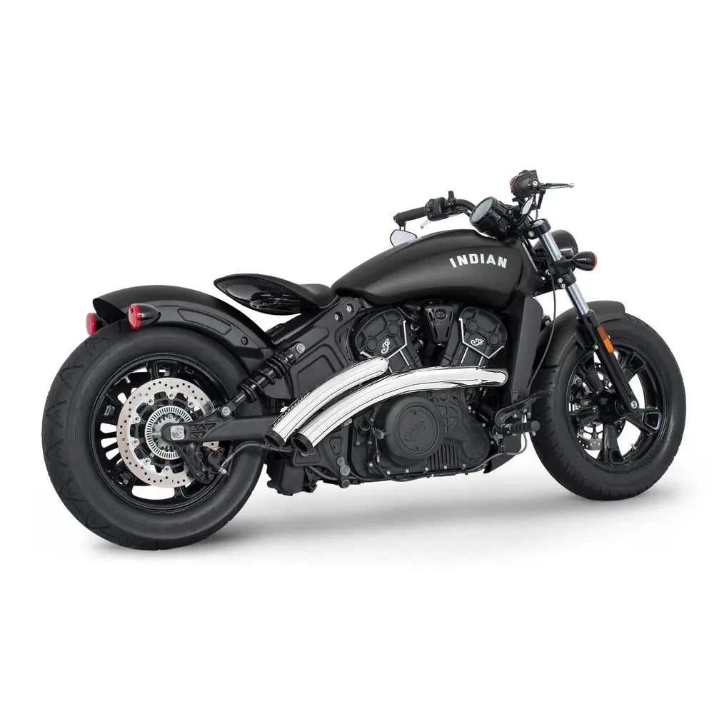 Anna Indian-moottoripyöräsi murista Freedom Performance Radical Radius -pakoputkistolla. Radical Radius -pakoputkissa on yksiosaiset 2 1/2" (64 mm) ulkohalkaisijaltaan 16 mm:n raskaat lämpösuojat, jotka peittävät pakoputket täydet 220 astetta, sekä kolmiportainen pakoputkijärjestelmä optimaalisen hevosvoiman ja vääntömomentin saavuttamiseksi.
