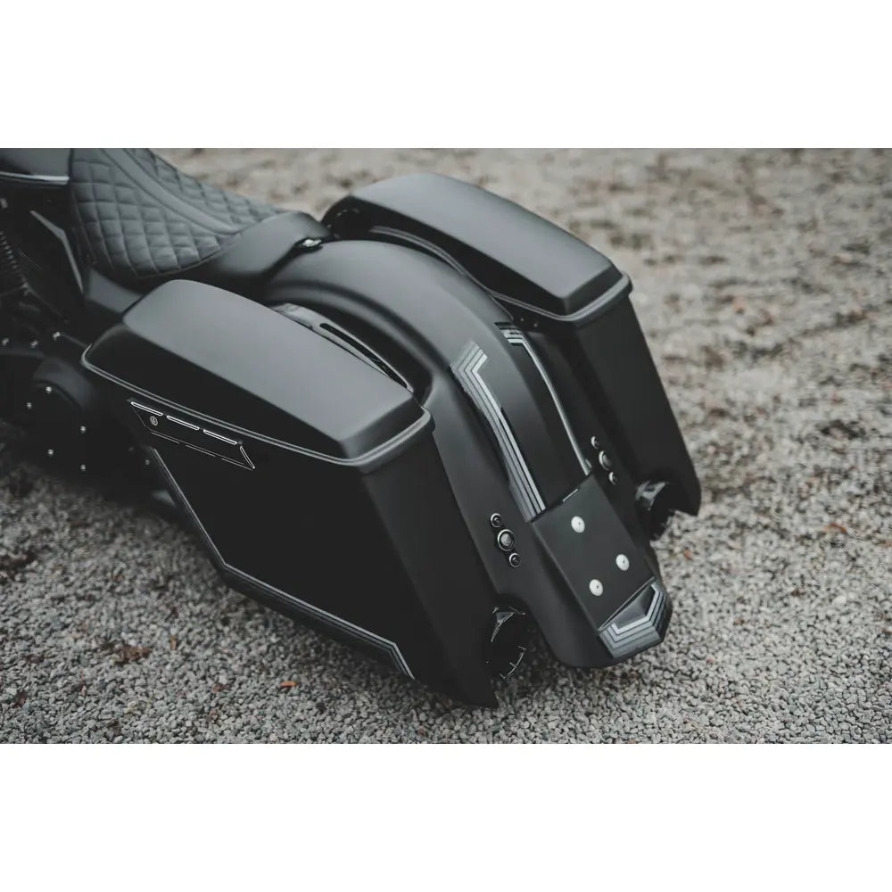 Killer Custom 5" venytetyt satulalaukut antavat pyörällesi räjähtävän custom-ilmeen. Ne korvaavat suoraan vakio-laukut ja tarjoavat lisää säilytystilaa. Ne on valmistettu käsin asetellusta, maalaamattomasta geelipinnoitetusta lasikuidusta, ja ne ovat vahvoja, suoria ja kevyitä.