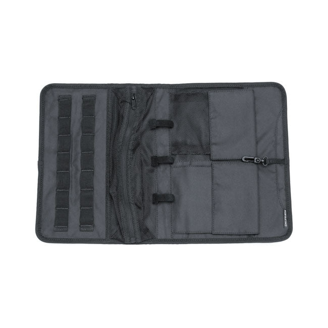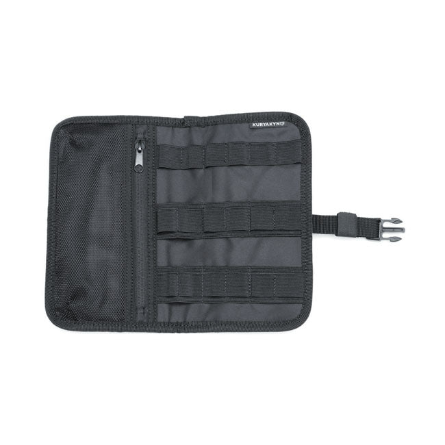 Kuryakyn Tour-Pak-kannen järjestelysetti pitää tärkeät tavarat siististi tallessa ja helposti saatavilla Harley-Davidson Tour-Pak -laukun sisällä. Uudistettu turvallisuuden parantamiseksi, se kiinnitetään nyt tarranauhalla vahvistetuilla nepparikiinnikkeillä. Kolmen säilytystaskun, integroidun MOLLE-paneelin ja irrotettavan työkalupussin/Dopp-pakkauksen ansiosta se on täydellinen tapa pitää varusteesi järjestyksessä jokaisella ajolla.