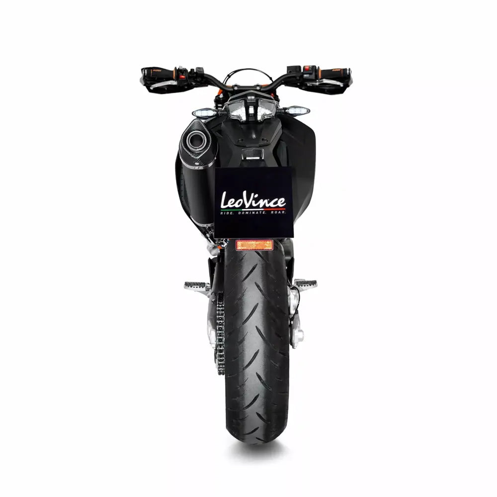 Anna KTM-moottoripyörällesi rohkea, musta ulkonäkö LeoVince Nero -pakojärjestelmällä. Kestävästä AISI 304 -ruostumattomasta teräksestä valmistettu ja lämmönkestävällä mattamustalla keraamisella maalilla päällystetty pakojärjestelmä tarjoaa sekä tyyliä että suorituskykyä. Kevyellä hiilikuituisella päätykappaleella ja laserkaiverretulla LeoVince-logolla varustettu Nero on suunniteltu kääntämään päitä.