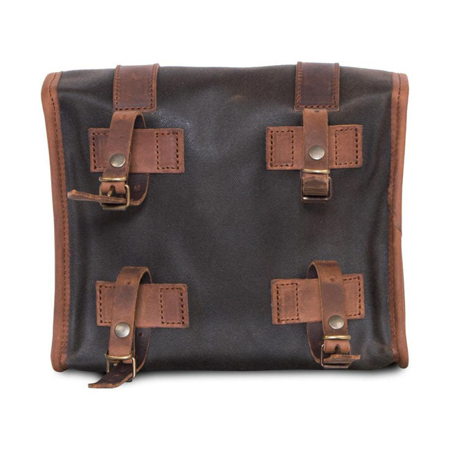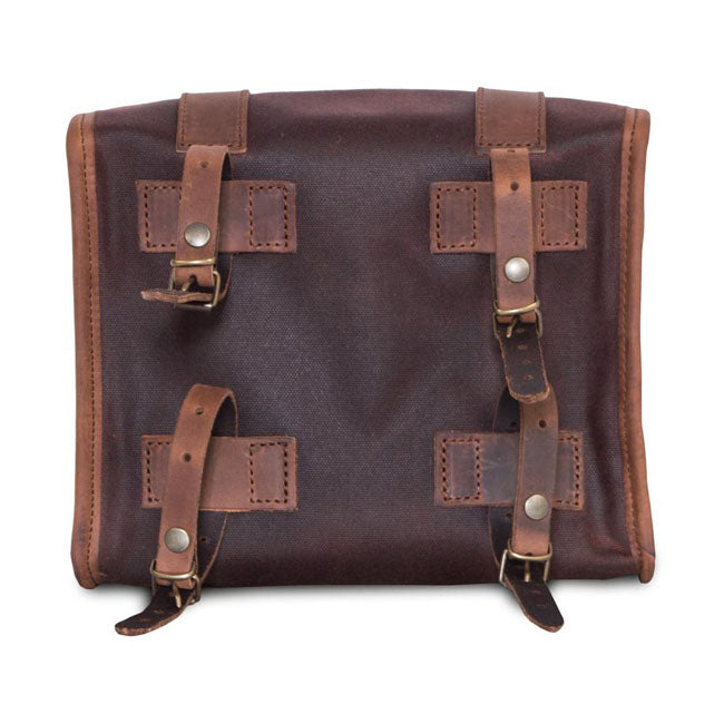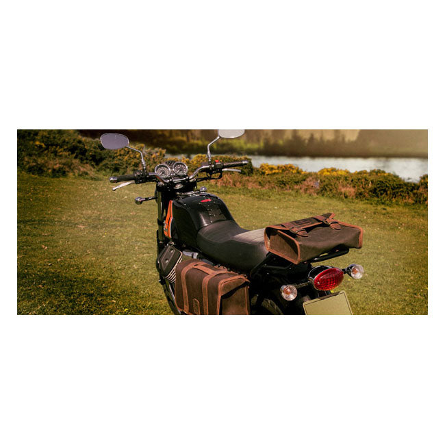 Mini Ammo vintage-satulalaukku on kompakti, retrotyylinen laukku, joka on suunniteltu klassisille ja retrotyylisille moottoripyörille. Se on valmistettu käsin 22 unssin vahatusta puuvillakankaasta ja kasvisparkitusta täysnahasta, joten se on kestävä, vedenkestävä ja vintage-tyylinen, joka ikääntyy kauniisti.