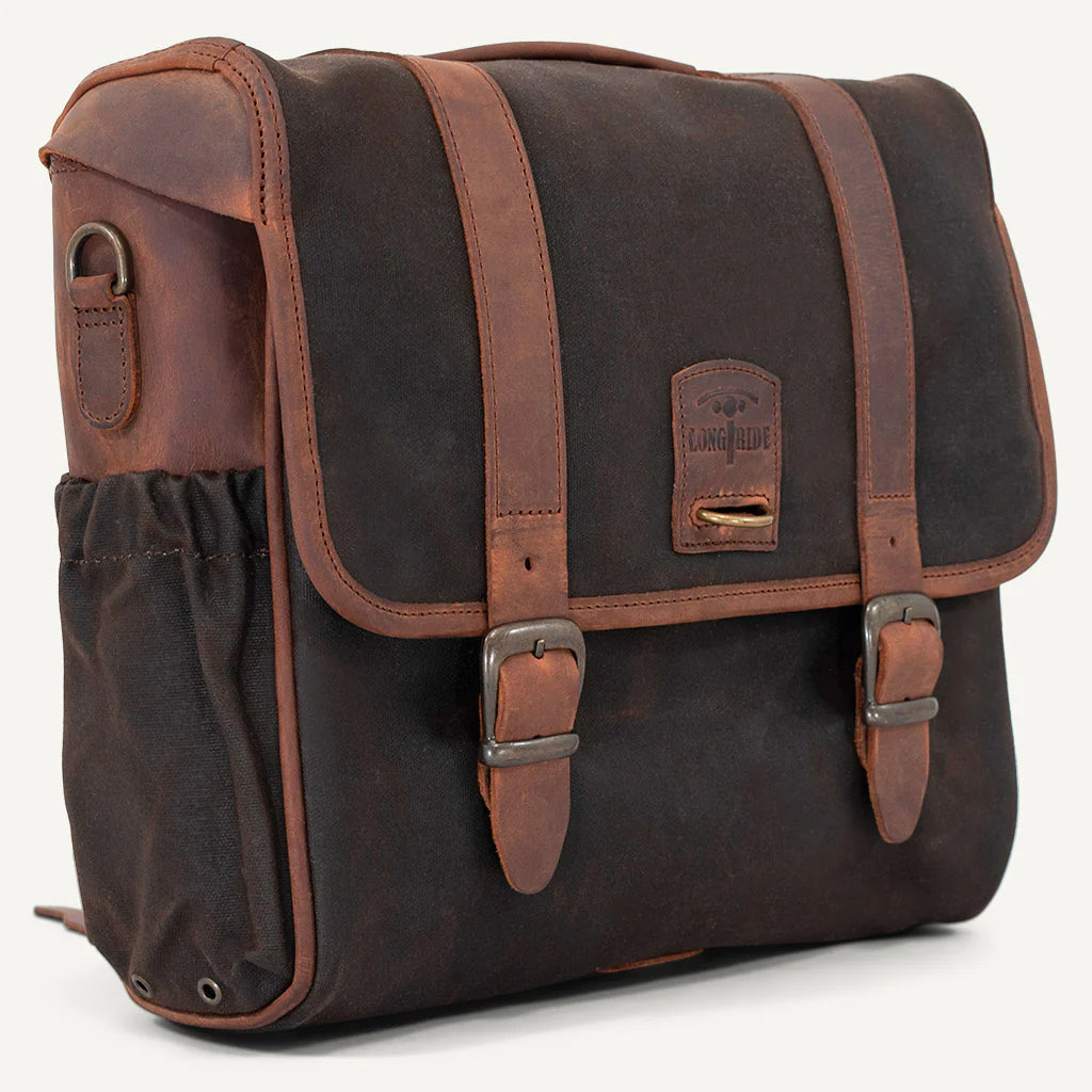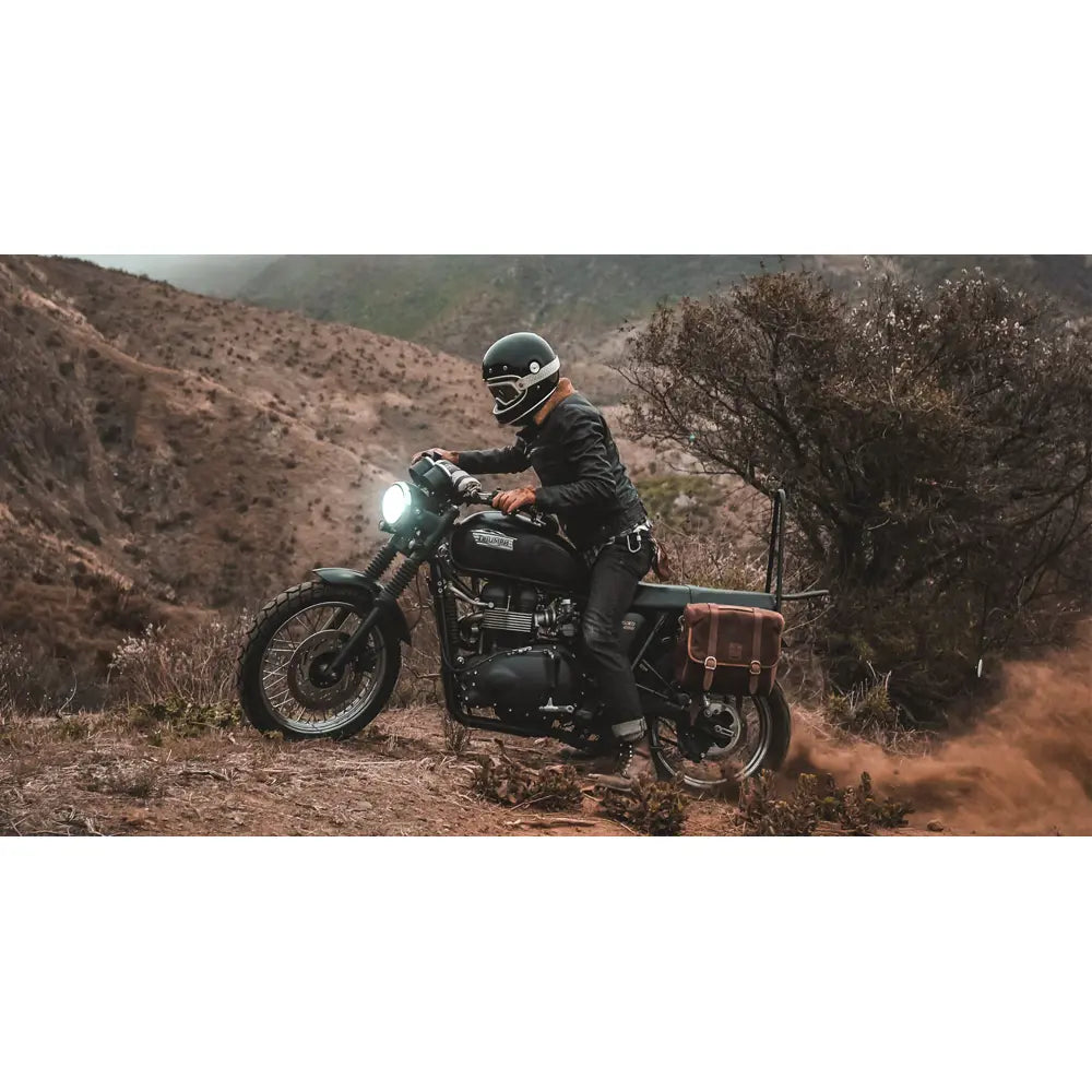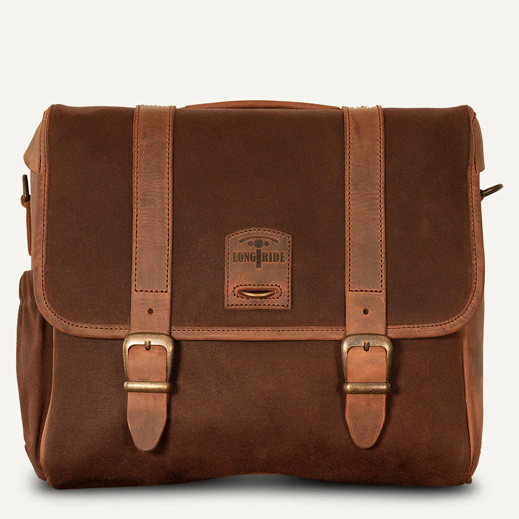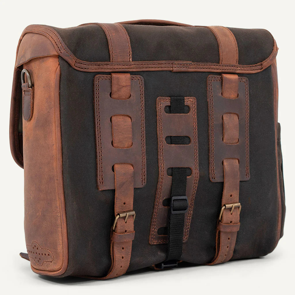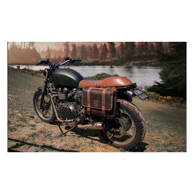 Racer-vintage-satulalaukku tuo moottoripyörällesi ajattoman retrotyylin ja modernin käytännöllisyyden. Käsintehty säänkestävästä vahatusta puuvillasta ja paksusta kasvisparkitusta täysnahkaisesta naudan nahasta.
