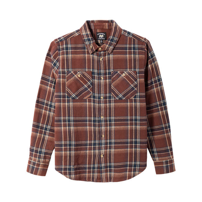 Flanelli, jossa on asennetta. Charlie-paita, jonka on suunnitellut Loser Machine ja Mooneyes yhdistävät pehmeää puuvillaa ja harkittuja yksityiskohtia, kuten kilpikonnapainikkeita ja Good Luck -neulaa. Puhdas ilme, hienovarainen brändi.