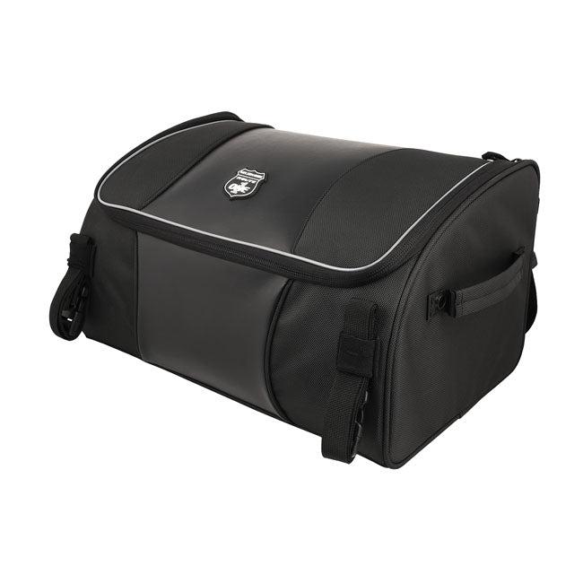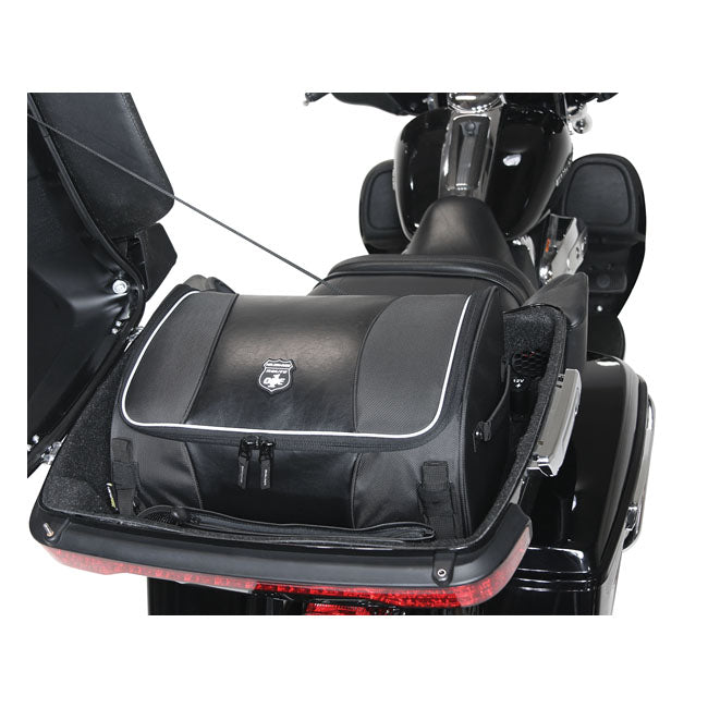 Route 1 Traveler Lite -laukku on monipuolinen keskikokoinen matkatavarasäilytysratkaisu, joka lisää moottoripyörään 35 litraa turvallista säilytystilaa. Se on valmistettu jäykästä UltraMax-kankaasta, joka tarjoaa maksimaalisen UV-suojan ja kestävän kestävyyden. Laukku säilyttää muotonsa myös tyhjänä ja on helppo kiinnittää tavaratilaan, tavaratelineeseen tai sissy-tankoon. Vedenpitävä sadesuoja, pikakiinnityshihnat ja kätevät kantokahvat tekevät laukusta käytännöllisen sekä moottoripyörällä että sen ulkopuolella.