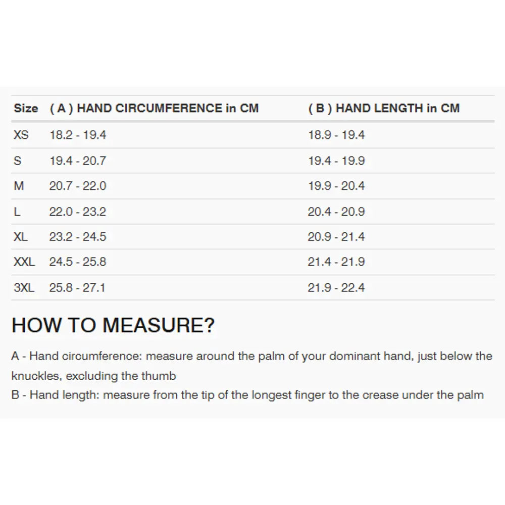 - Temperfoam® at back of hand, cuff, palm slider, thumb knuckle, and finger knuckles
