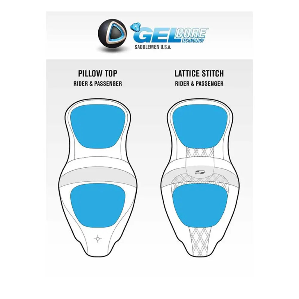 Istuimen ergonominen jaettu tyynyrakenne vähentää selkäpainetta ja häntäluun rasitusta progressiivisen tiheyden vaahtomuovin ja omien GelCore-lisäosien yhdistelmän ansiosta. Tämä istuin takaa terapeuttisen mukavuuden, olipa kyseessä sitten lyhyet matkat tai eeppiset 500+ kilometrin seikkailut.