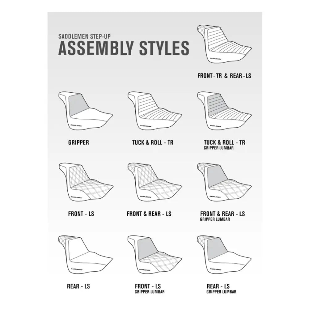 . Saddlemen Step-Up tarjoaa useita muokattavia vaihtoehtoja, kuten ompelutyylit, värivaihtoehdot ja pidennetyn ulottuvuuden. Se on suunniteltu mukavuutta ja tyyliä varten, ja sen avulla voit muokata ajoasi yksilöllisesti ja nauttia samalla edistyksellisestä istuinteknologiasta. Tutustu mallistoomme löytääksesi täydellisen istuimen pyörääsi.