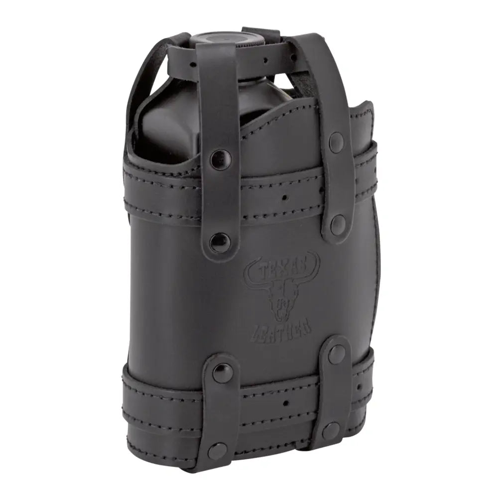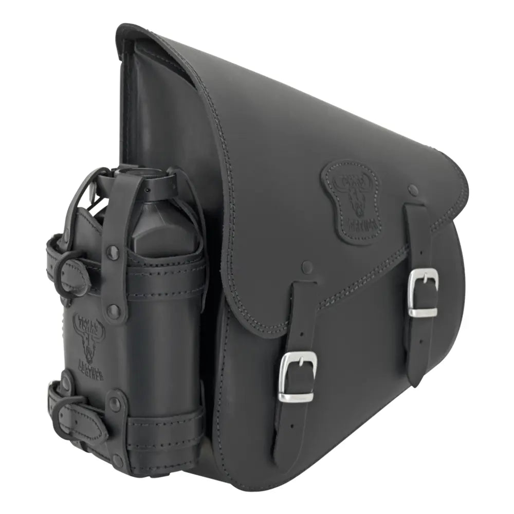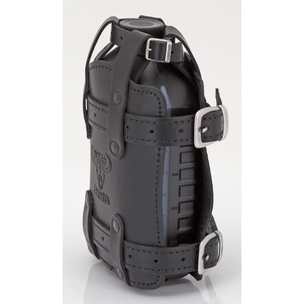 The Texas Leather öljypullon pidike sopii useimpiin suorakaiteen muotoisiin 1 litran öljypulloihin, jotka on helppo kiinnittää pyörään. Valmistettu aidosta nahasta.