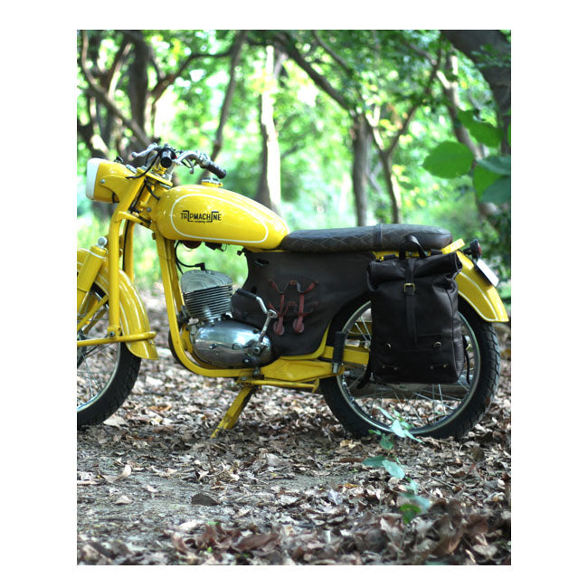 Trip Machine vintage-nahkainen 15 litran satulalaukku / reppu on käsintehty laukku, joka sopii sekä moottoripyörällä ajamiseen että muuhun käyttöön. Käytä sitä satulalaukkuna, joka on nopea ja helppo asentaa, tai kuljeta sitä tyylikkäänä päivittäisenä reppuna. Valmistettu 100% kestävästä nahasta, se on suunniteltu kestämään vuosia ja kehittymään ainutlaatuiseksi patinaksi jokaisen ajon myötä.