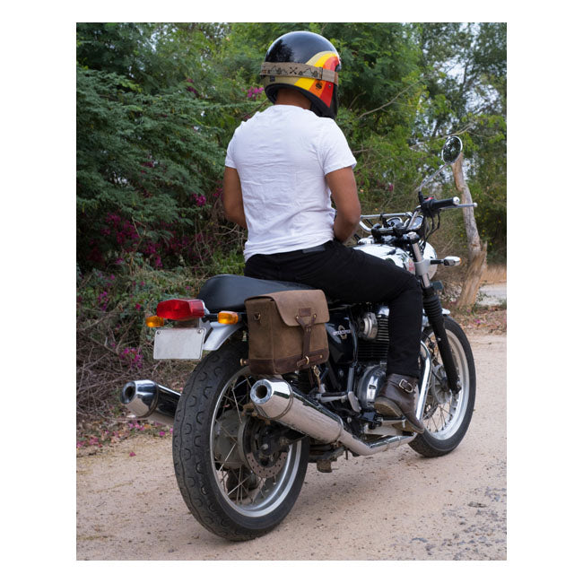 Trip Machine -moottoripyörän lähetinlaukku on saanut inspiraationsa klassisesta sveitsiläisestä toisen maailmansodan ammuslaukusta. Käsintehty, käytännöllisesti katsoen tuhoutumattomasta 2,5 mm:n paksuisesta, valjaiden valmistuksessa käytetystä raskaasta nahasta valmistettu laukku on tehty kestämään koko eliniän ja kehittymään käytön myötä rikkaan patinan omaavaksi. Sen erottuva, patinoitunut pinta antaa sille ajattoman luonteen, ja universaali kiinnitysjärjestelmä mahdollistaa nopean kiinnittämisen ja irrottamisen moottoripyörästä. Moottoripyörän ulkopuolella laukkua on mukava kantaa olkapäällä, ja sen tilavassa, mokkanahkaisella vuoratussa taskussa voit pitää tärkeät tavarat järjestyksessä.