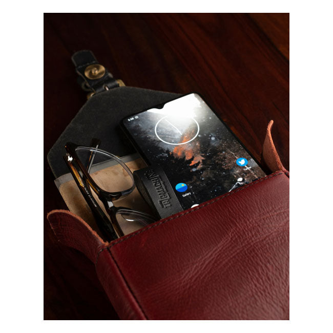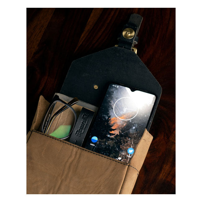 Trip Machine -tankkilaukku on suunniteltu kuljettamaan ajon aikana tarvittavia tavaroita, kuten avaimia, käsineitä, lompakkoa tai bandanaa. Se kiinnittyy tukevasti tankkiin kuuden voimakkaan magneetin avulla ja voidaan ripustaa vyöhön, kun olet poissa moottoripyörän selästä. Käsintehty korkealaatuisesta nahasta, se on valmistettu kestämään ja vain paranee iän myötä, kehittäen ainutlaatuisen patinan ajan myötä.