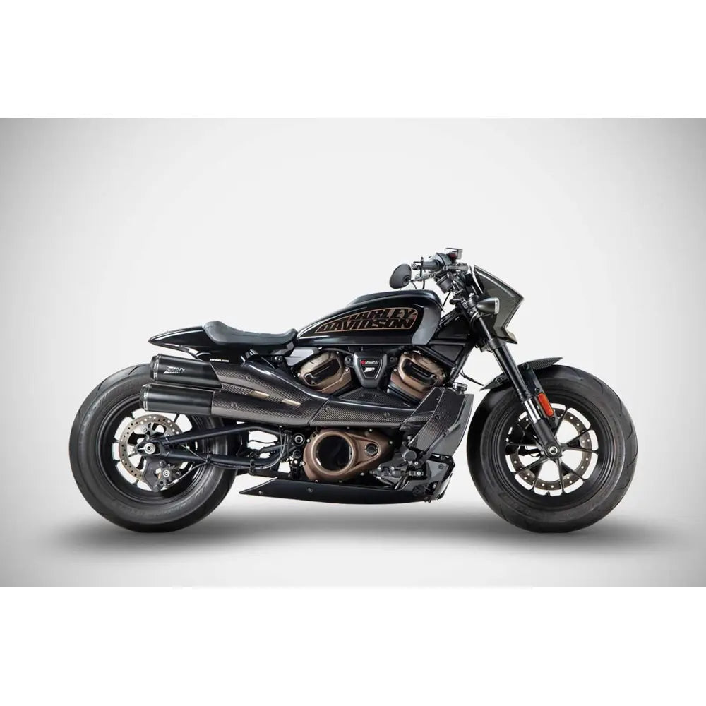 Päivitä Harley Davidson Sportster S:n Zard 2-1-2 Euro 5 EU-oikeudellisella Slip-On-pakoputkistolla. Tämä nykyaikainen pakojärjestelmä parantaa pyöräsi tyyliä, parantaa moottorin suorituskykyä ja tuottaa erehtymättömän Zard-äänen - kaikki Euro 5 -standardien mukaisesti.